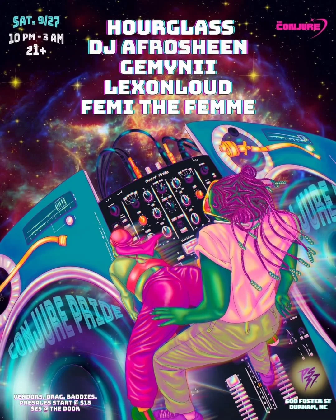 Back to All Events Conjure PRIDE ‘25 (Durham) Saturday, September 27, 2025 10:00 PM Sunday, September 28, 2025 3:00 AM 600 FOSTER ST (map) Google Calendar ICS TICKETS: https://www.eventbrite.com/e/conjure-pride-25-tickets-1618088057939?utm-campaign=social&utm-content=attendeeshare&utm-medium=discovery&utm-term=listing&utm-source=cp&aff=ebdsshcopyurl